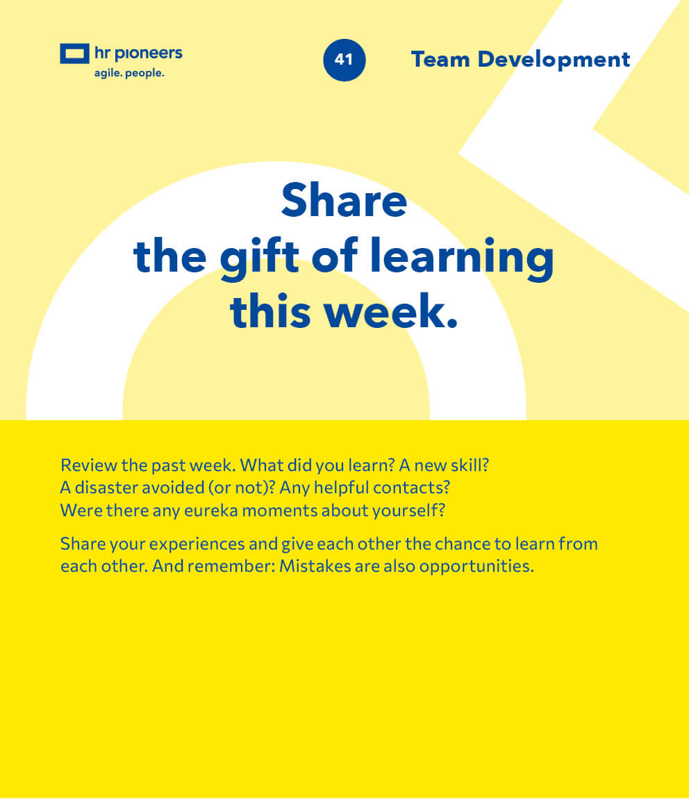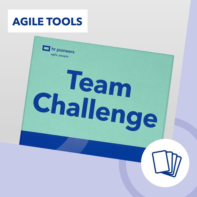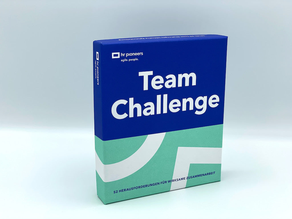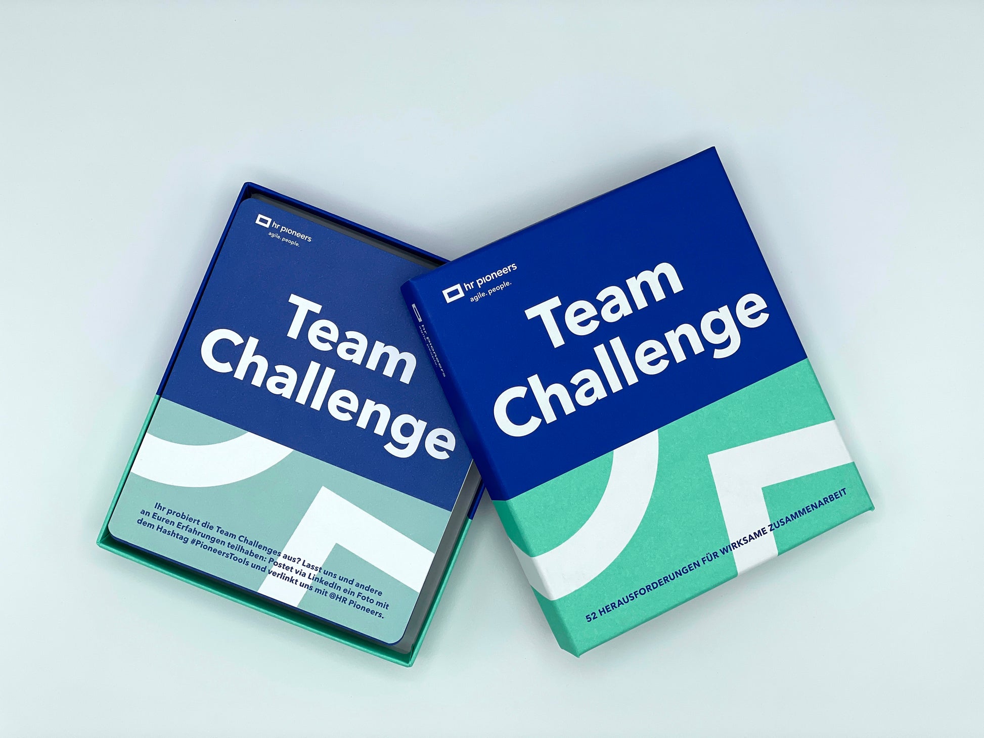 Die Team Challenge ist ein Kartenset, das für wir für Euren Einsatz im Team entwickelt haben. Auf Basis von Kund:innenerfahrungen. Es besteht aus 52 Impulsen, die Ihr ganz praktisch in Euren Arbeitsalltag integriert. Die Idee dabei ist, dass Ihr jede Woche eine neue Herausforderung also Challenge angeht. Teambuilding par Excellence!